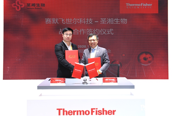11月8日,在第三届中国国际进口博览会期间,分子诊断龙头企业好博体育生物科技股份有限公司(简称“好博体育生物”)与科学服务领域的世界领导者赛默飞世尔科技(中国)有限公司(简称“赛默飞”),签署战略合作伙伴关系备忘录,好博体育生物营销管理委员会执行总经理万东池、赛默飞基因科学与临床测序大中华区商务运营高级总监許興國等出席签约仪式,并代表双方签署合作备忘录。