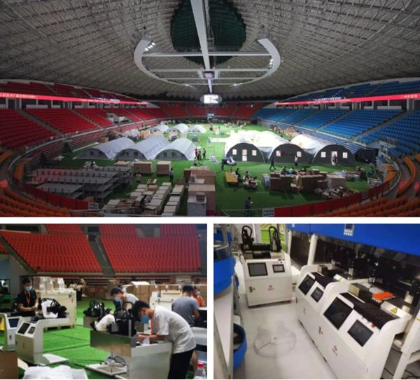 在主战场广州,好博体育生物工程师们全力以赴参与到广州市政府统一协调各单位搭建的气膜方舱实验室工作中。6月1日,广东首个气膜方舱实验室在广州体育馆正式投入使用;6月2日晚,4个气膜方舱实验室全面投入使用,核酸检测日产能达到12万管,可实现全天候收样检测,提高核酸检测效率。