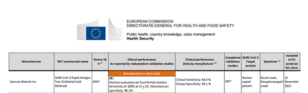 目前市场上用于新冠快速检测的产品非常多,在欧盟官网COVID-19新冠抗原快速检测试剂的清单中列出了几百项产品,均已获得CE认证。欧盟HSC在此基础上针对新冠抗原快速检测试剂提出了更严格的要求,需要厂家提供更多的验证资料证明产品的性能才可进入Common list。