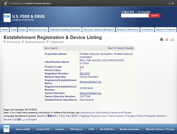 近日,好博体育生物全新一代iPonatic全自动核酸检测分析系统获得美国FDA认证,这是继获得欧盟IVDR CE认证之后,斩获的又一全球权威认证。