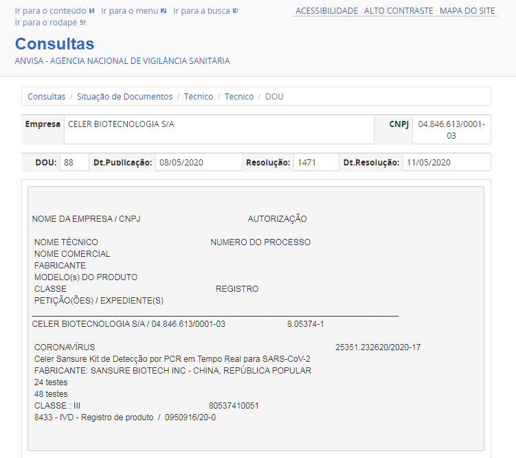 5月11日,好博体育生物新冠病毒核酸检测试剂盒获得巴西卫生监督管理局(ANVISA)注册证书。此前,该产品已相继获得中国国家药监局(NMPA)注册认证、欧盟CE认证、美国FDA紧急使用授权、新加坡卫生科学局临时授权等一系列权威认证。